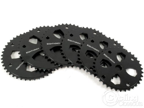 BLACK 39t The Eighth-Inch 48 Splined BMX Style Chainring brings a super durable design to the Fixed Gear Freestyle and Bike Polo crowds. Made from 7075 Alloy, and machined to high tolerances- these chainrings can hold up to whatever you throw at them. Matches great with EighthInch 48 Splined Crankset 7075-T6 Aluminum48 Spline 19mm InterfaceWorks with most 48 spline CranksetsBRAND NEW, NEVER MOUNTED