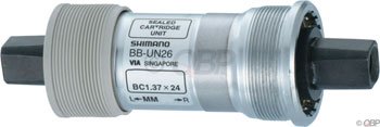 Bottom Brackets - Bicycle Components Reviews Shimano BB-UN26 cartridge BB, JIS - 73x110mm (Rating: 4/5 Total Reviews: 3) Shimano BB-UN54 73x110mm BB (Rating: 4.6/5 Total Reviews: 5) Shimano BB-UN54 Bottom Bracket BMX Project - Crankset/Bottom Bracket - Bicycle Repair Forums http://www.amazon.com/Shimano-BB-UN26-cartridge-BB-JIS/dp/B000F5JOPM/ and something like this: http://www.amazon.com/Shimano-Single-Speed-Crank-ring/dp/B0036POLM4/ SCHWINN MESA GSD 2009 - Mountain Bike - Tonino Fork Suntour XCT MLO Suspension fork. 100mm travel, lock out and preload adjust Crank Shimano Altus FC-M311 42/32/22T Bottom Bracket Shimano BB-UN26 cartridge sq. JIS ... Bikeman: Square Taper JIS - Cool Bike Parts and Accessories from ... Shimano compatible square taper spindle design. Not compatible with Campagnolo. ... Interloc Racing Design QB55 Cartridge BB, JIS - 68x103mm Mfr Part : RD4141 Bottom Bracket Shimano Square Taper in Sporting Goods eBay Newly listed SHIMANO BB-UN26-E Square Tapered BB ... Shimano BB-UN26 73 x 113mm Square Taper JIS English ... Shimano Bottom Bracket Square Taper Sealed Cartridge BB-UN55 68mm x ... 73 X 113 Bottom Bracket - Bikeman Search Shimano BB-UN26 Bottom Brackets have hollow, square taper JIS spindles. Hollow spindle ... Interloc Racing Design QB55 Cartridge BB, JIS - 68x113mm High quality sealed cartridge ... Amazon.com: Shimano UN54 Bottom Bracket: Sports & Outdoors Shimano BB-UN26 Square taper Bottom Bracket ... now have enough clearance for the steel cartridge to seat. (The cartridge steel flange will be flush with the BB ... Shimano square taper bb UN54 vs UN26 [Archive] - Bike Forums Does anyone have experience or knowledge of these Shimano BB's? A Shimano rep obviously ... Shimano square taper cartridge bottom brackets have served me well for the last 15 ... Amazon.com: Customer Reviews: Shimano BB-UN26 cartridge BB, JIS ... 5 stars. "Shimano UN26 Bottom Bracket" This product was purchased because it is the reccommended bottom bracket for the the Alivio crankset that I reviewed earlier. I ... Shimano UN26 (Alivio/Sora) JIS Bottom Bracket - $10.95 - Bike ... Shimano UN26 (Alivio/Sora) JIS Bottom Bracket ... UN26E cartridge BB, JIS - 73x122.5mm E-type Interface: JIS Thread: English